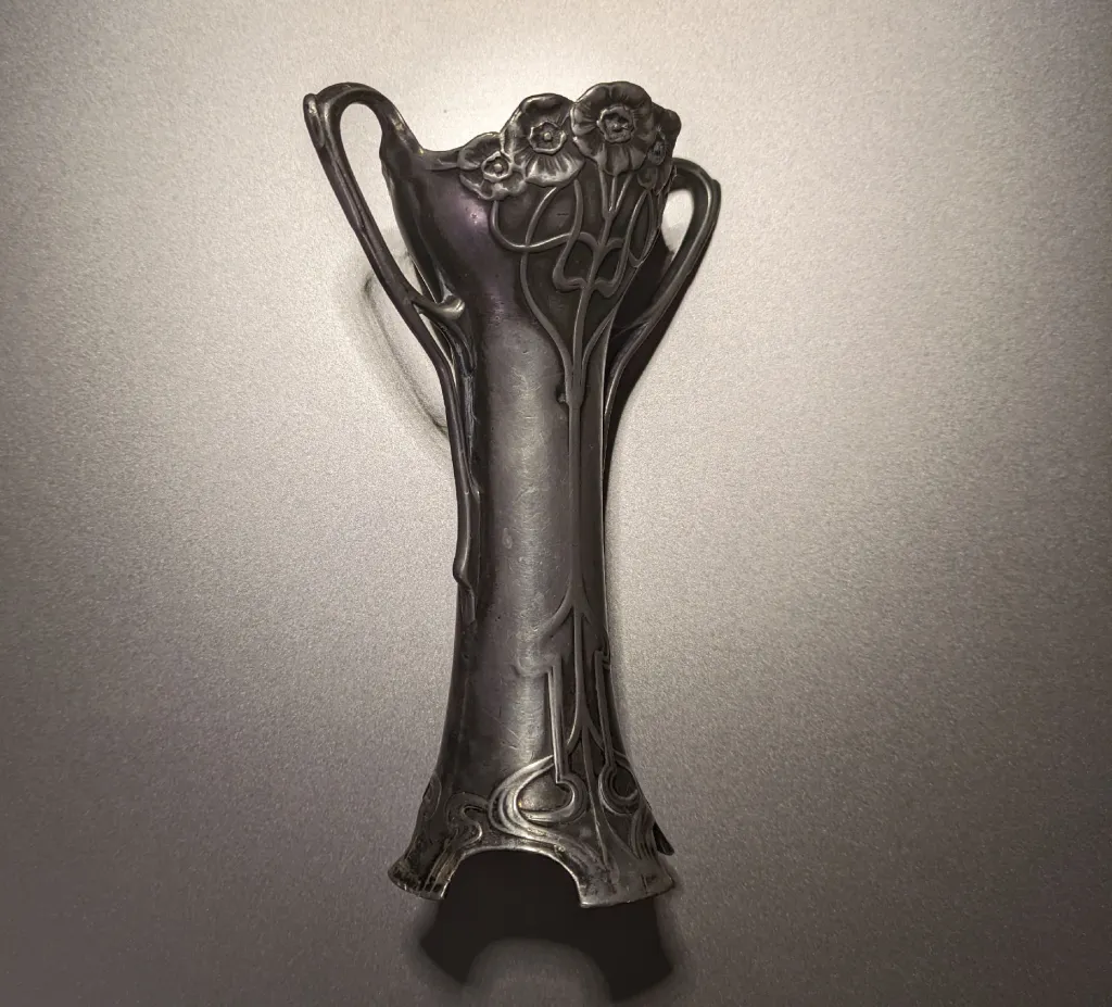 Artificial patination (sulfur liver solution) is used to give the appearance of an antique product.